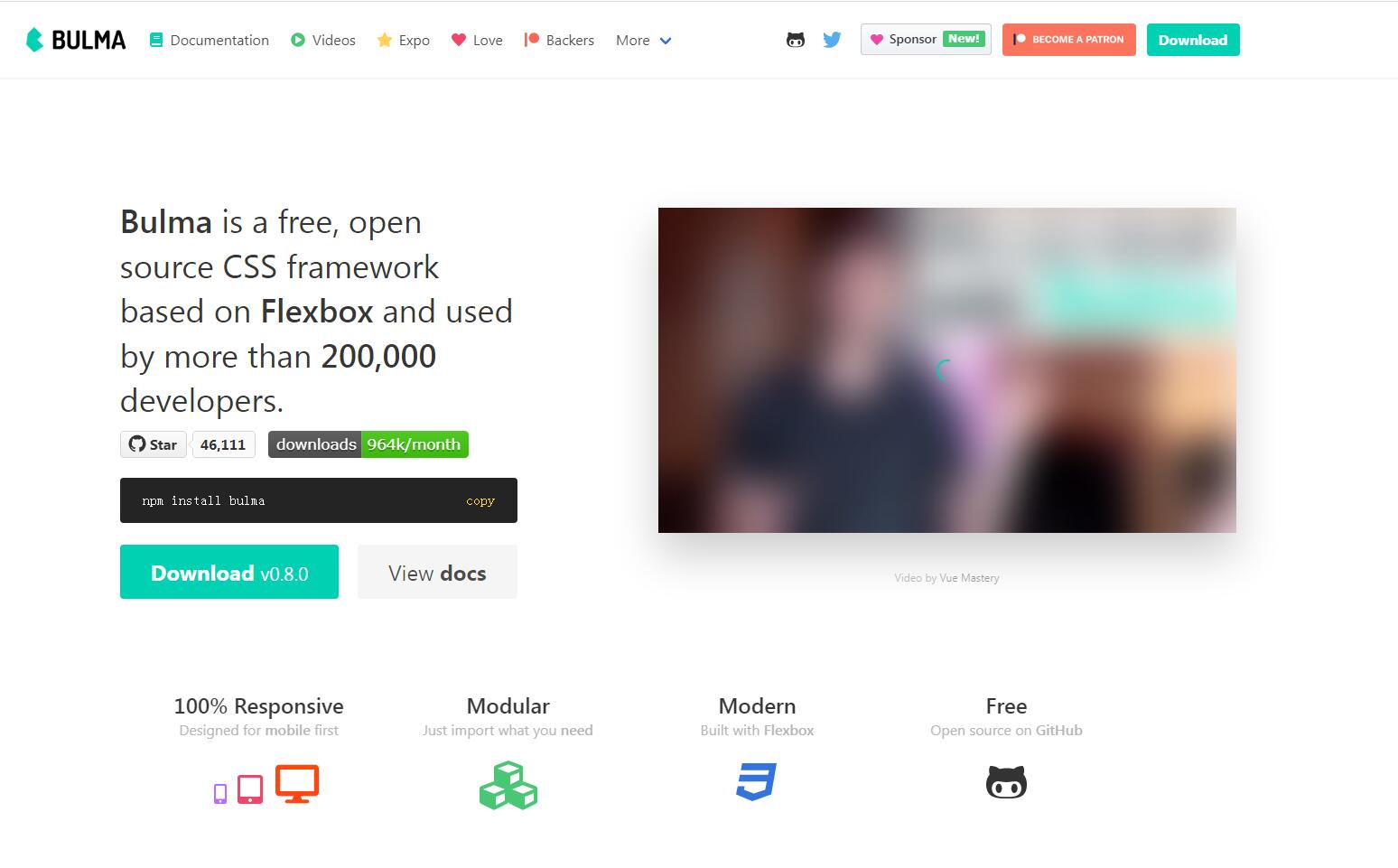 Bulma 是一個基于 Flexbox 布局技術的免費、開源的現(xiàn)代 CSS 框架,它提供了易于使用的前端的組件,您可以輕松地組合這些組件來構建響應式Web界面。