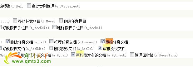 3、依次打開(kāi)后臺(tái)》系統(tǒng)設(shè)置》系統(tǒng)用戶管理》用戶組管理》信息發(fā)布員》權(quán)限設(shè)定,把“審核任意文檔”“審核授權(quán)文檔”“審核我發(fā)布的文檔”勾上就可以了,如下圖所示