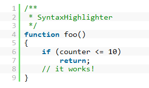 SyntaxHighlighter (原名:dp.SyntaxHighlighter)是一套在瀏覽器上對各種代碼進行語法著色的獨立 JavaScript 庫。格式化效果如下圖所示: