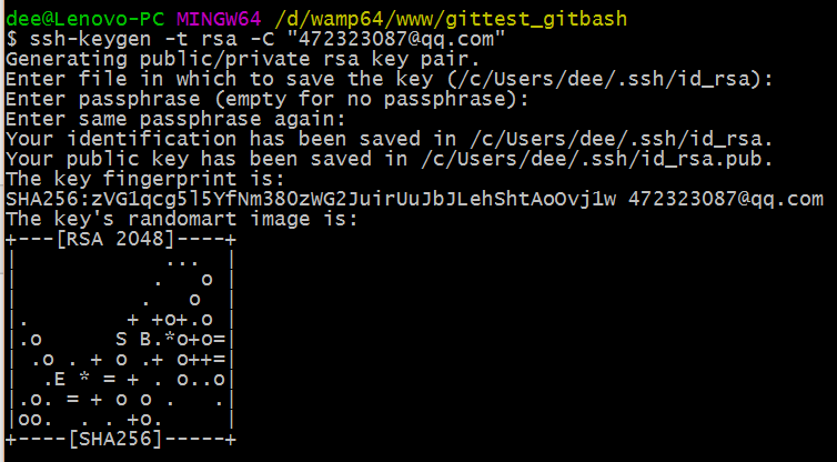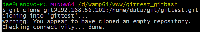 dee@Lenovo-PC MINGW64 /d $ cd wamp64/www dee@Lenovo-PC MINGW64 /d/wamp64/www $ mkdir gittest_gitbash dee@Lenovo-PC MINGW64 /d/wamp64/www $ cd gittest_gitbash dee@Lenovo-PC MINGW64 /d/wamp64/www/gittest_gitbash $