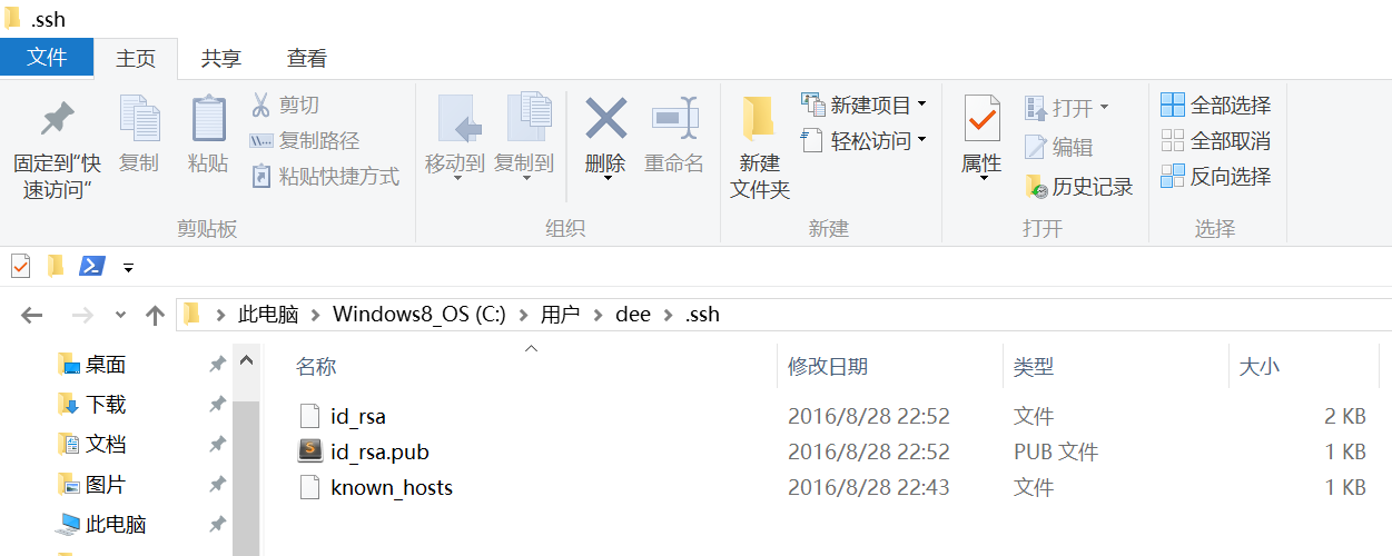 此時(shí) C:\Users\用戶名\.ssh 下會(huì)多出兩個(gè)文件 id_rsa 和 id_rsa.pub