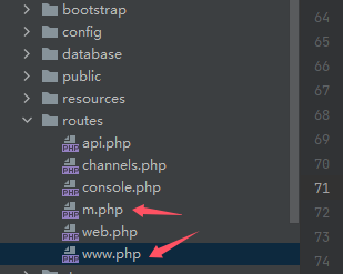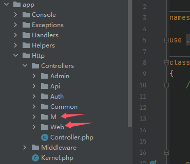 1、在app\http\Controllers文件夾里面創建PC端和移動端不同的控制器文件夾,分別對應PC端的路由文件及移動端路由文件