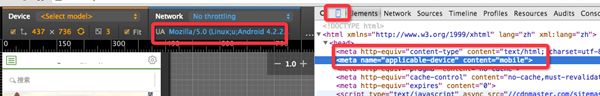 開發(fā)完成后,需要先在測(cè)試機(jī)上驗(yàn)收。可以用 Google 瀏覽器來(lái)模擬 Baiduspider 來(lái)檢查是否添加正確, 如圖所示, 是檢查 Baiduspider Mobile UA 的效果的