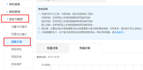 針對(duì)惡意外鏈?zhǔn)录掖伟l(fā)生,站長(zhǎng)平臺(tái)發(fā)布了“外鏈分析”的工具,讓各位站長(zhǎng)可以明確的知曉到底有哪些站放了我們網(wǎng)站的外鏈。各位可以在站長(zhǎng)平臺(tái)查看: