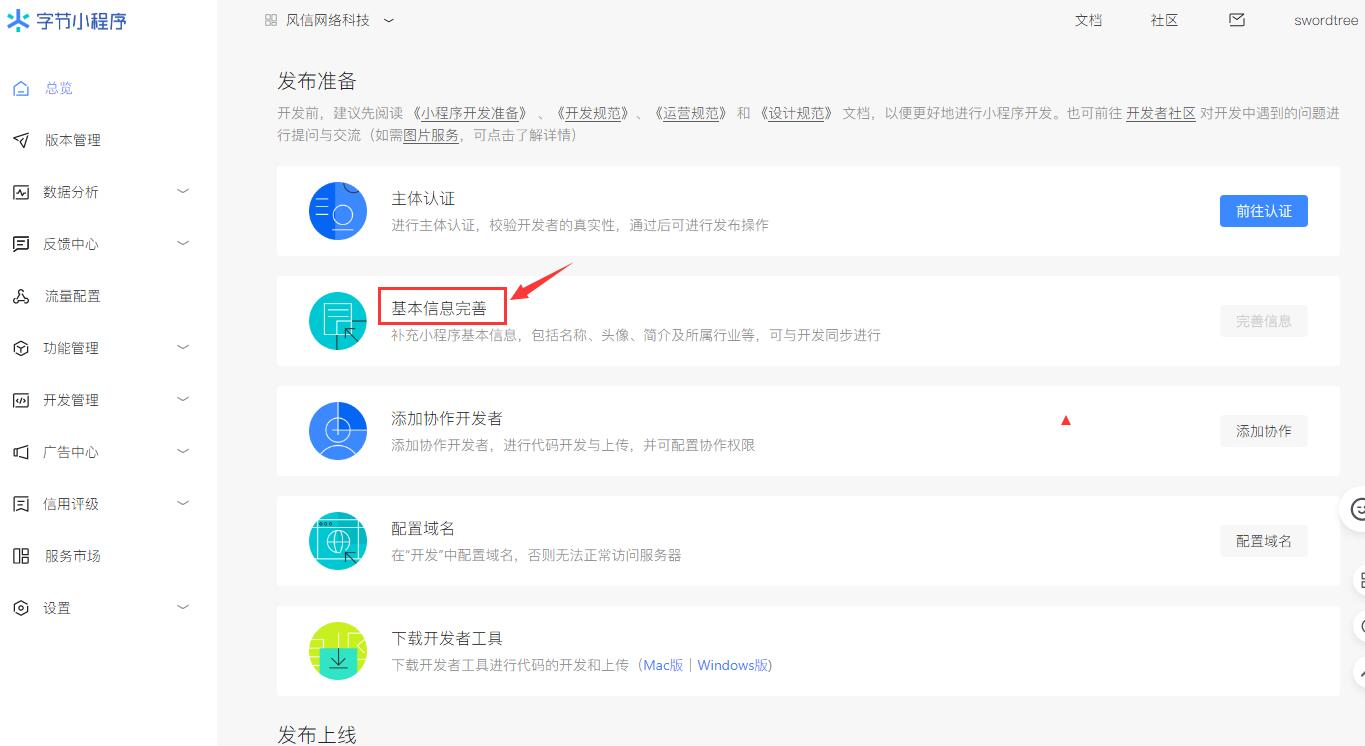 完成認(rèn)證后需完善小程序的基本信息。