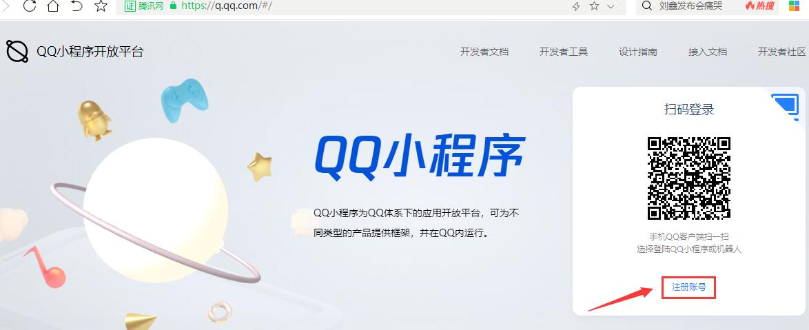 (1)登錄QQ小程序官網 https://q.qq.com/#/ 點擊“注冊帳號”,進行帳號注冊。