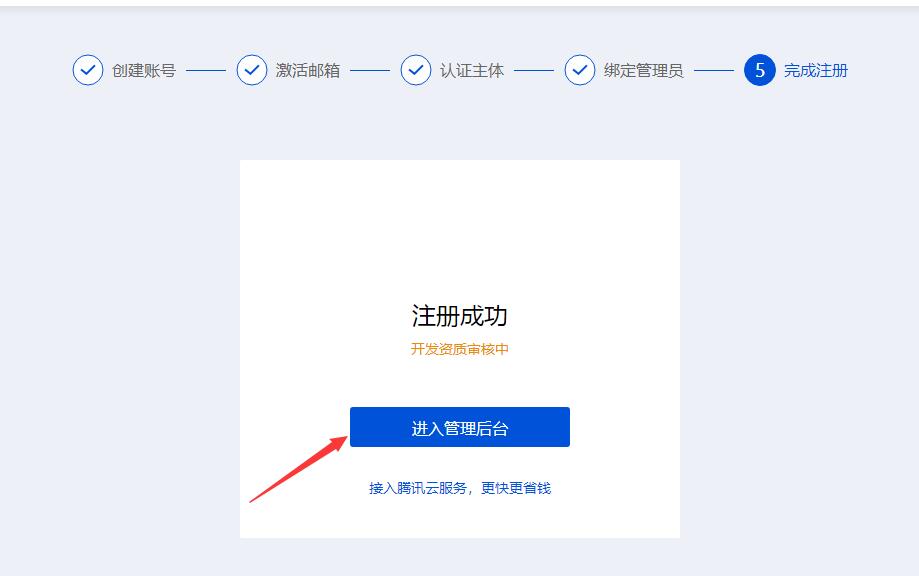 點擊激活郵箱,騰訊會發送一封激活郵件到所填寫的郵箱賬號,點擊郵件中的鏈接,跳轉至“認證主體”頁面。
