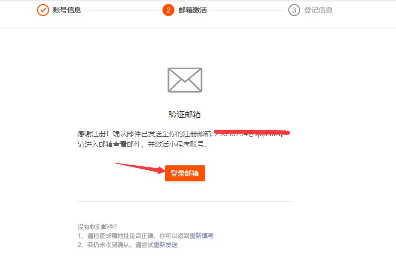 點擊登錄郵箱,系統會發送一封激活郵件到所填寫的郵箱賬號,點擊郵件中的鏈接,跳轉至“登記信息”頁面。
