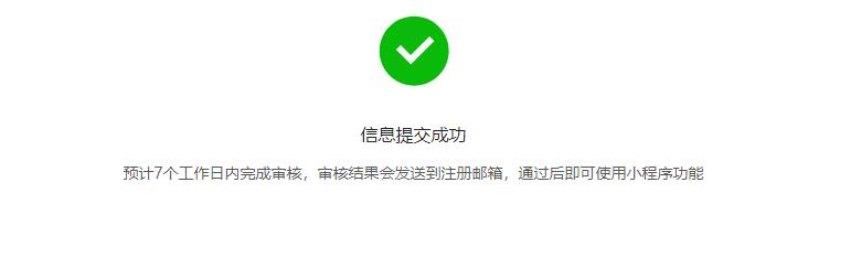 信息提交成功,7個工作日內完成審核,審核后,即可使用小程序功能。