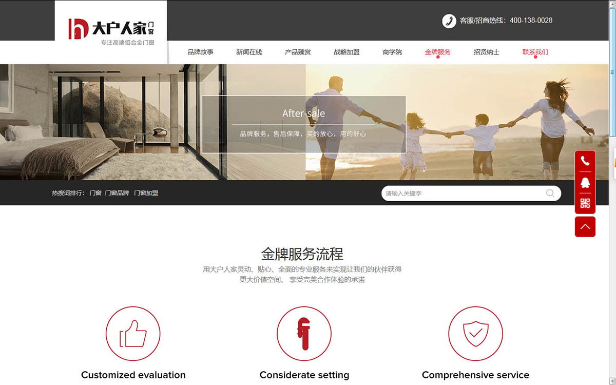 風(fēng)信網(wǎng)絡(luò)響應(yīng)建站某門窗有限公司是一家集研發(fā)、生產(chǎn)、銷售、服務(wù)為一體的全屋鋁合金門窗定制企業(yè),公司位于珠三角軸心城市,中國鋁材之都佛山南海,坐擁一手優(yōu)質(zhì)鋁材資源,廠房規(guī)模達(dá)50000㎡,以品牌化、專業(yè)化、市場化的經(jīng)營理念,打造健康環(huán)保門窗款式。