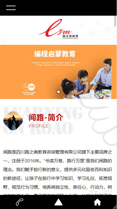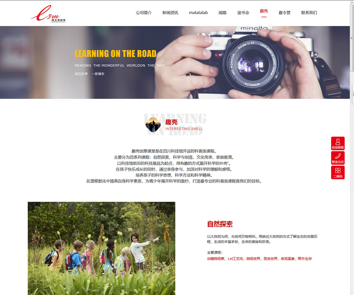 風信網絡響應式建站某教育咨詢有限公司是一家集課程研發、教育活動策劃運營為一體的教育咨詢公司,將研學實踐、STEAM教育融合是公司的一大特色。